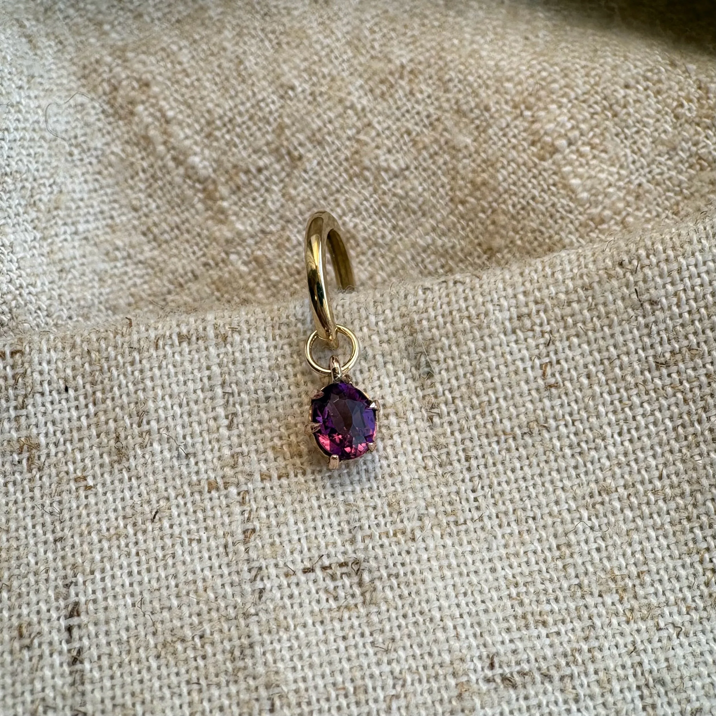 This deep purple amethyst hoop charm brings such a pop of colour.