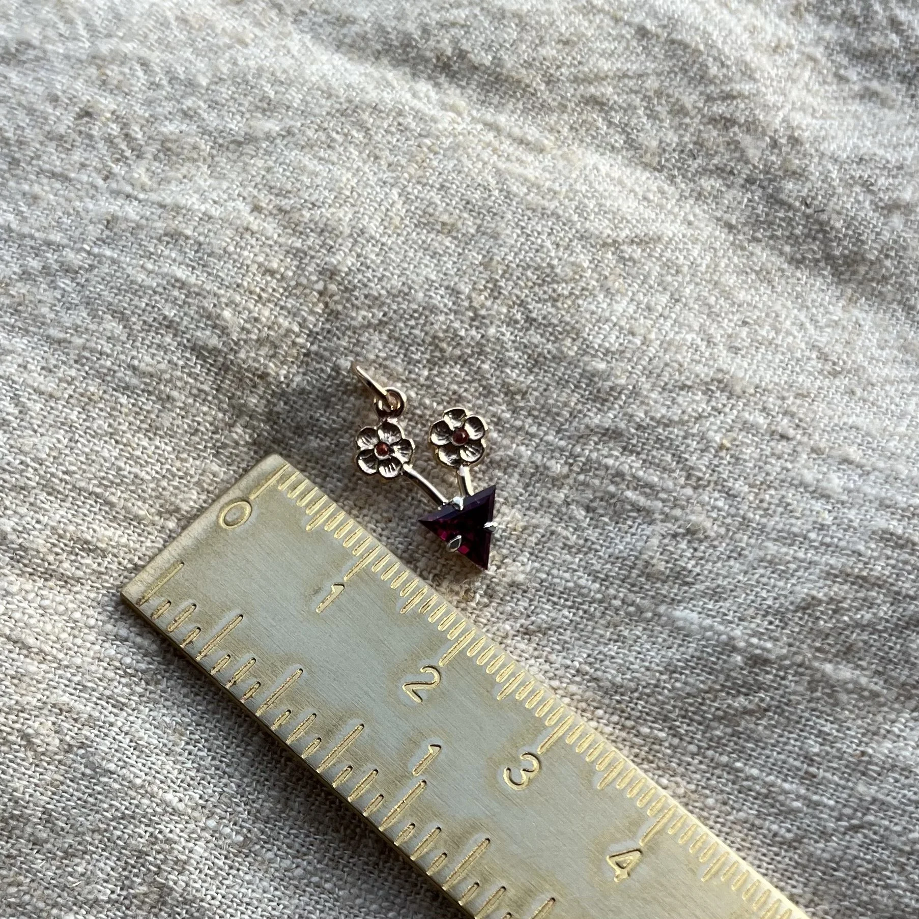 Flower pot garnet charm pendant in sterling silver with solid 9ct rose gold flowers