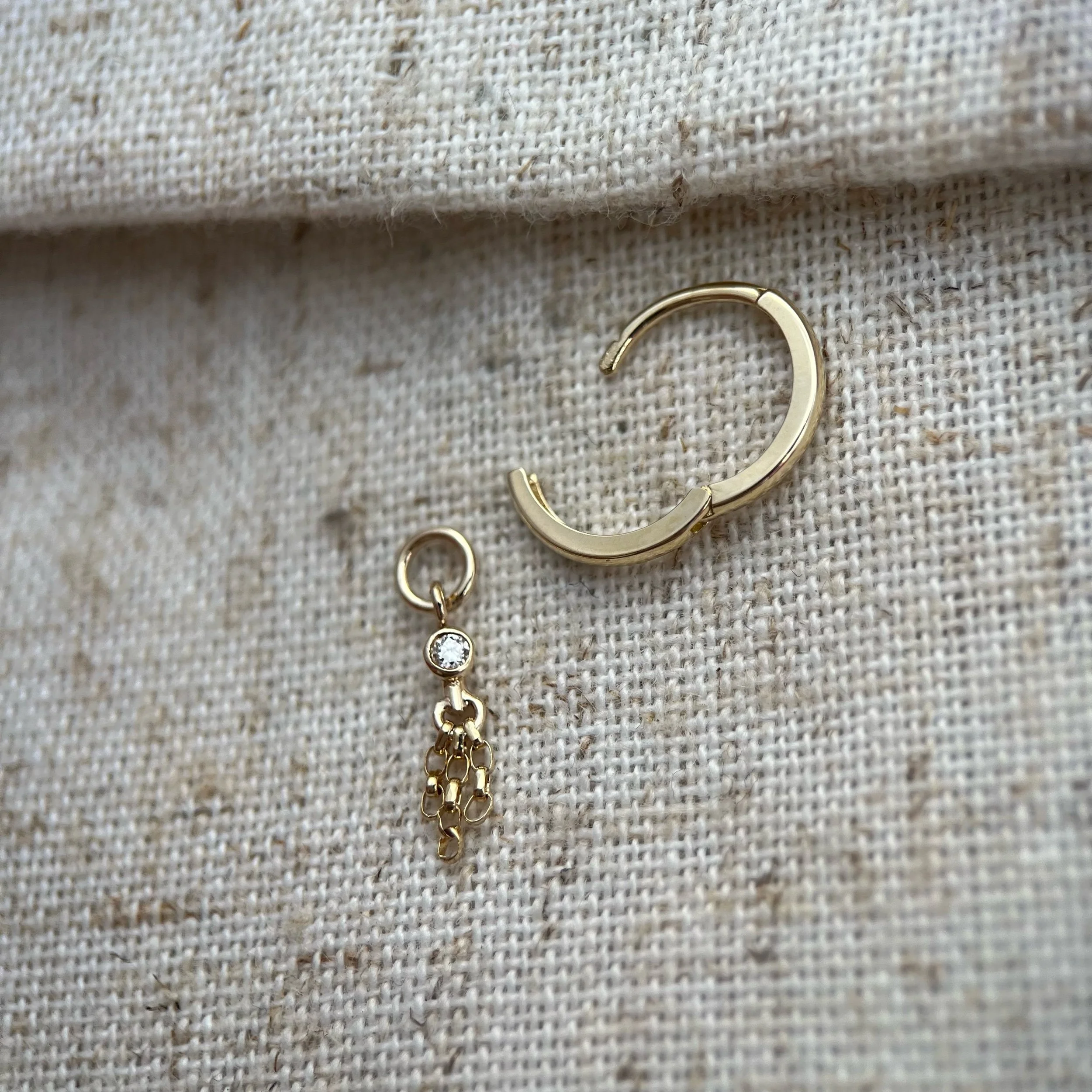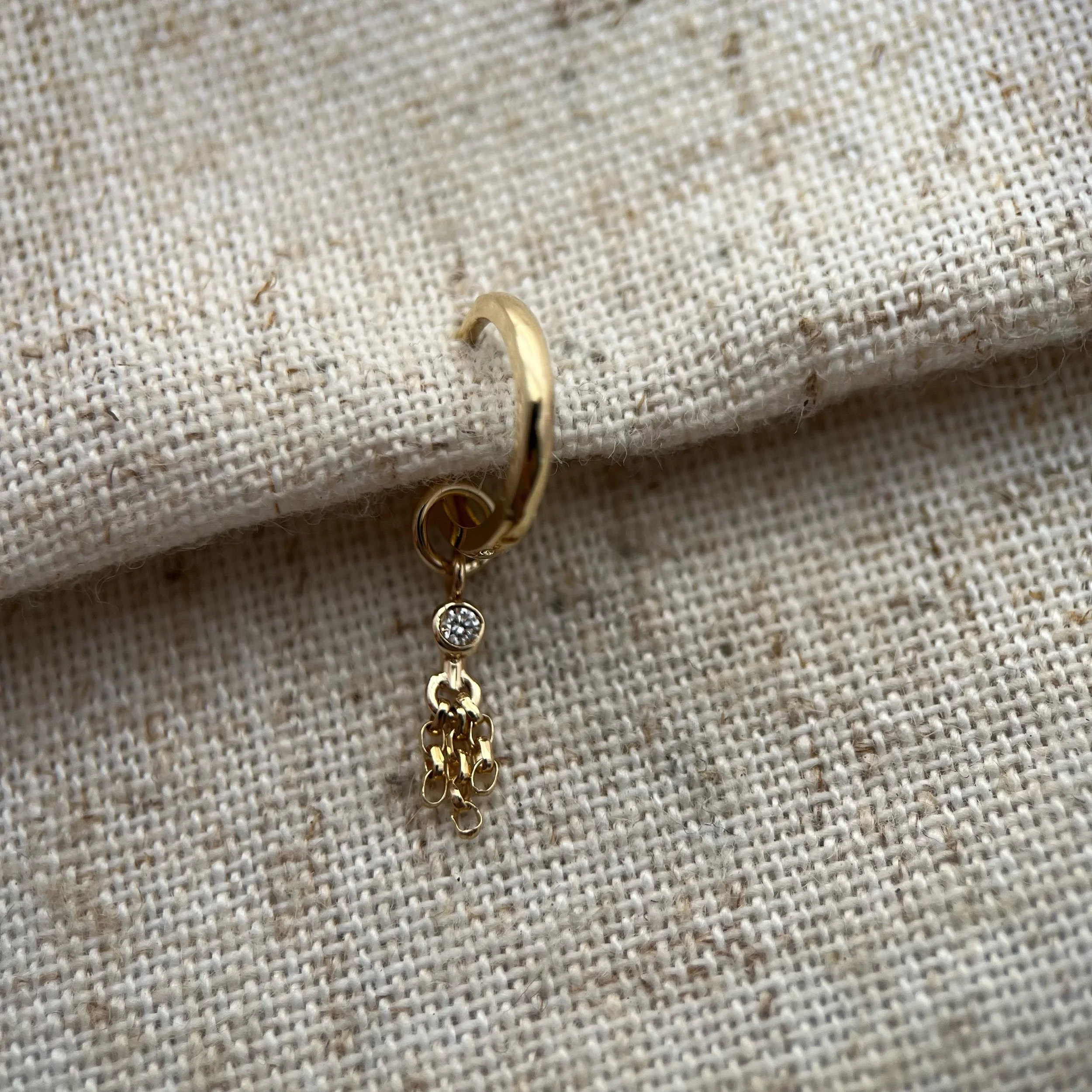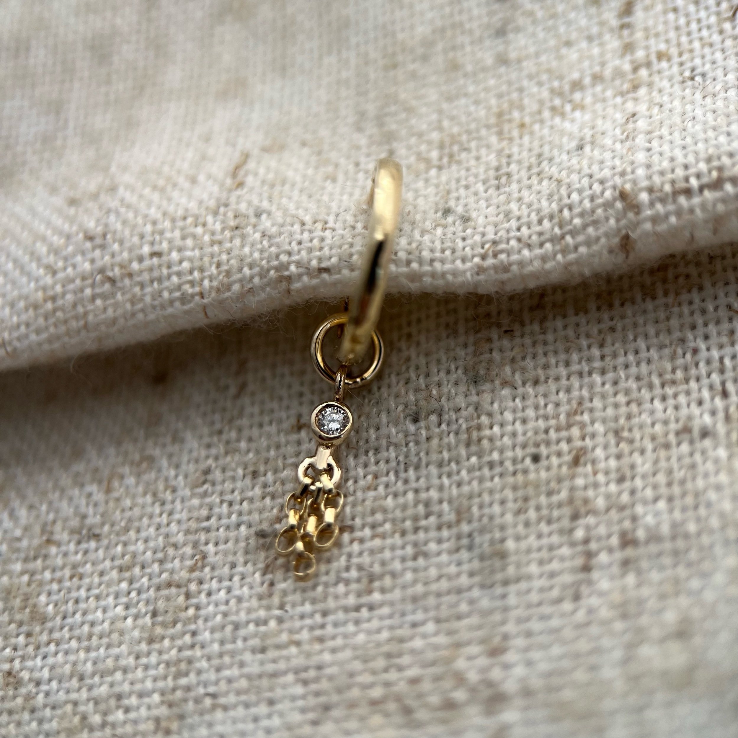 Genuine diamond chain tassel hoop charm set in 9ct solid gold. One single charm.