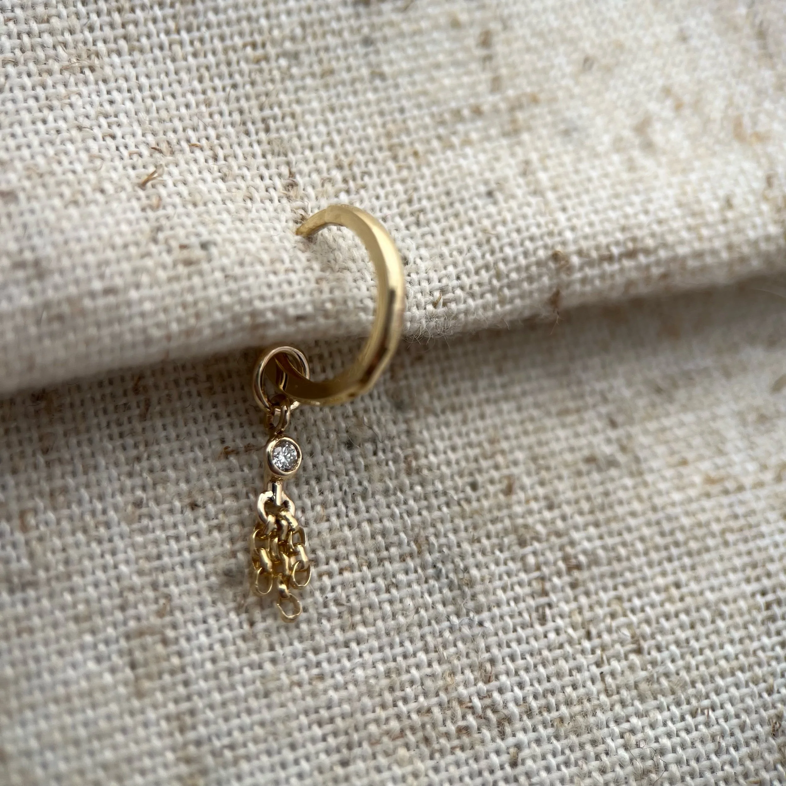A natural genuine diamond charm with a shimmering tassel of chains made in solid 9ct gold. The perfect charm to sparkle below a delicate huggie hoop.
