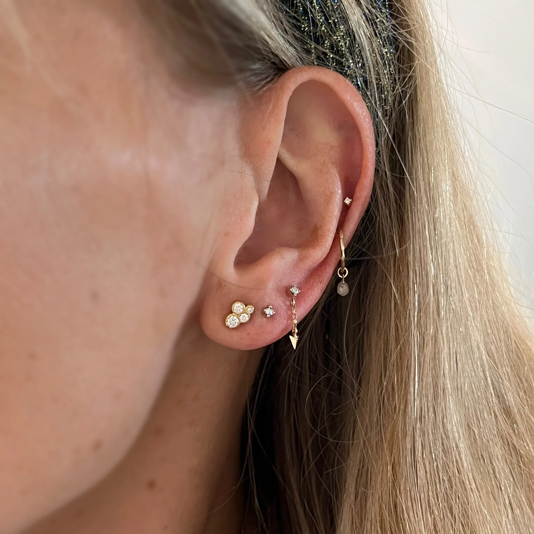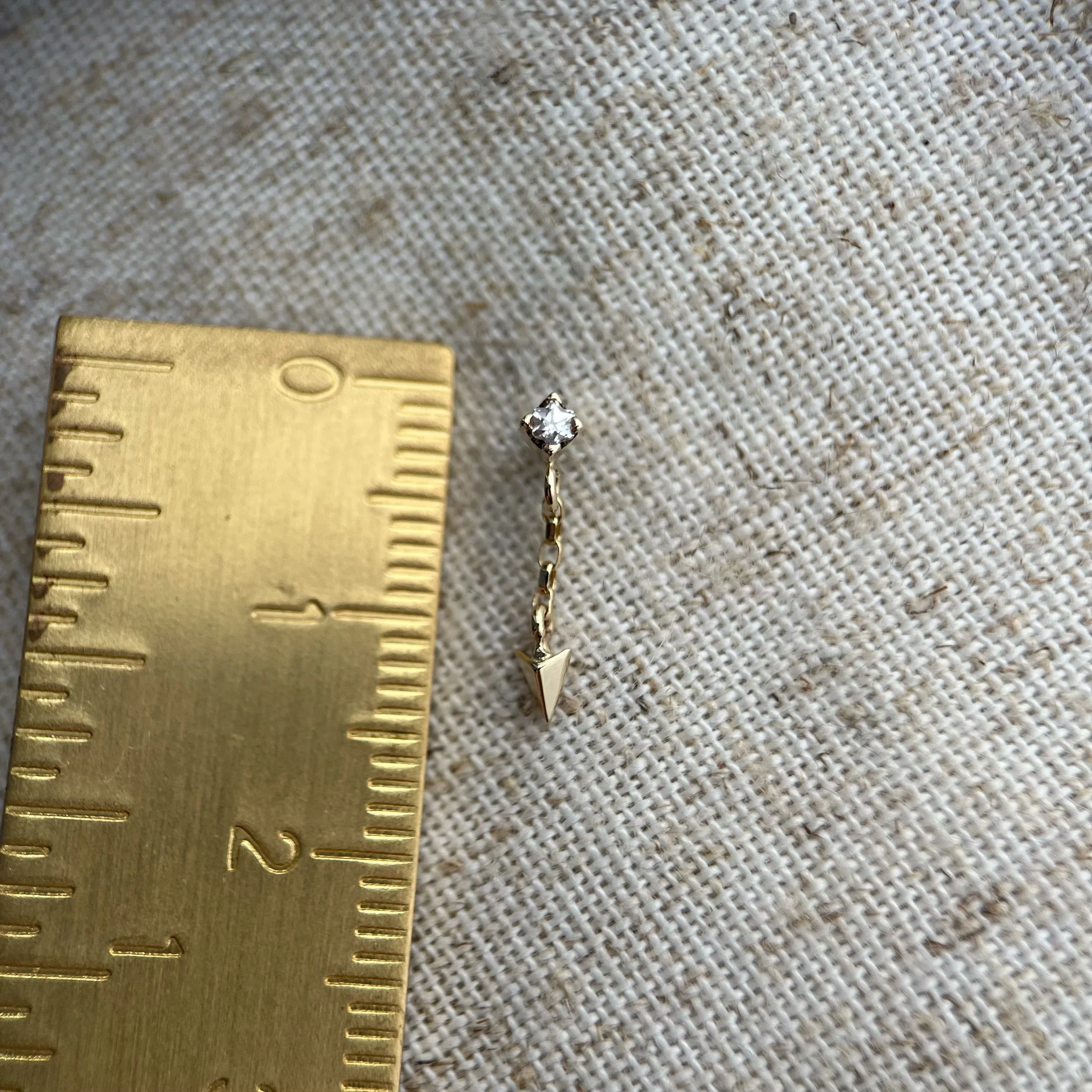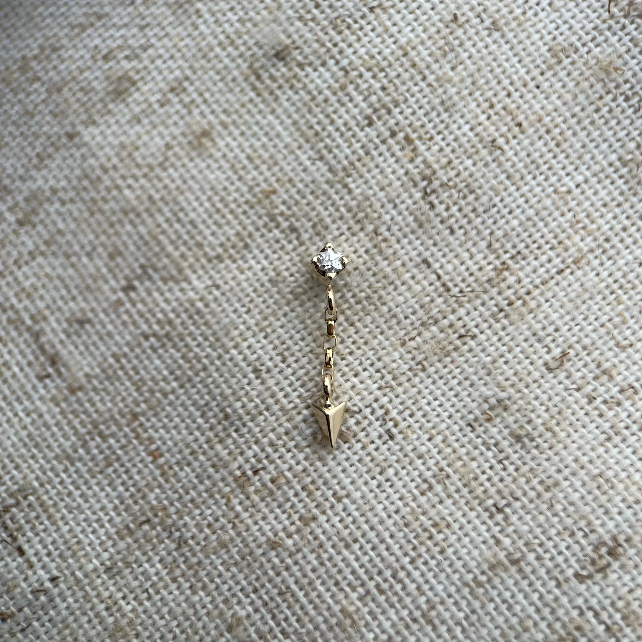 Tiny genuine diamond chain spike ear stud in solid yellow gold. Single earring. Post and butterfly back.