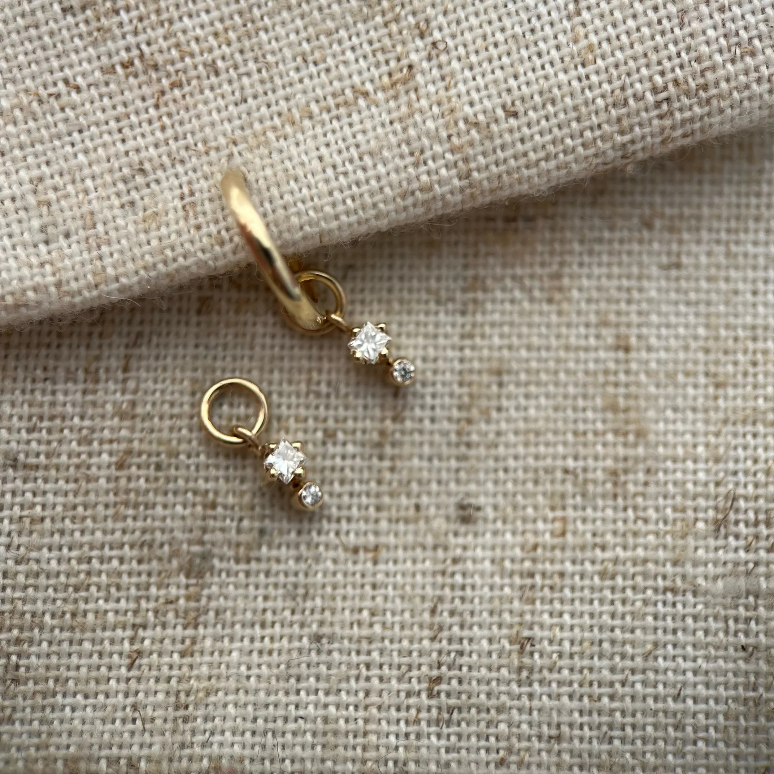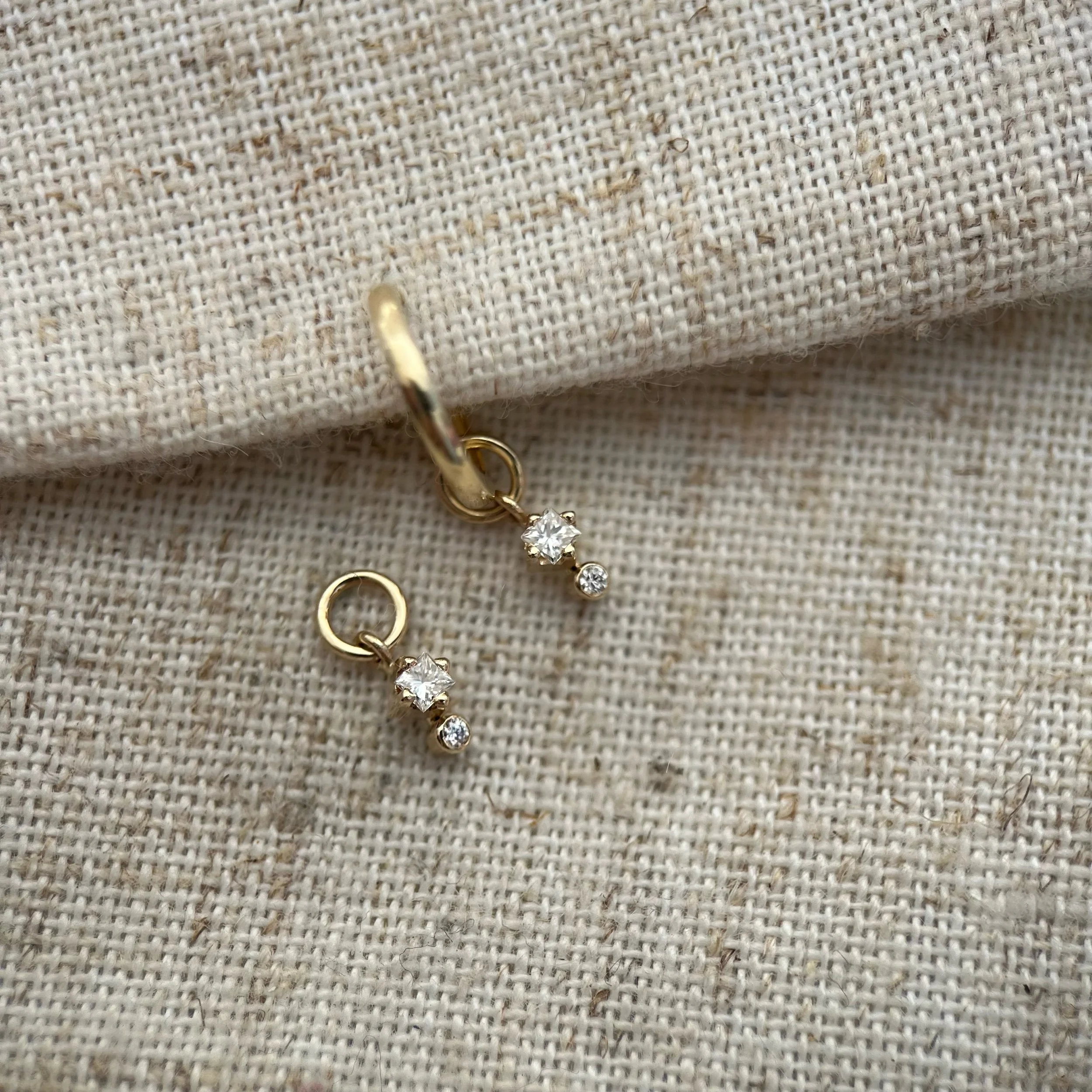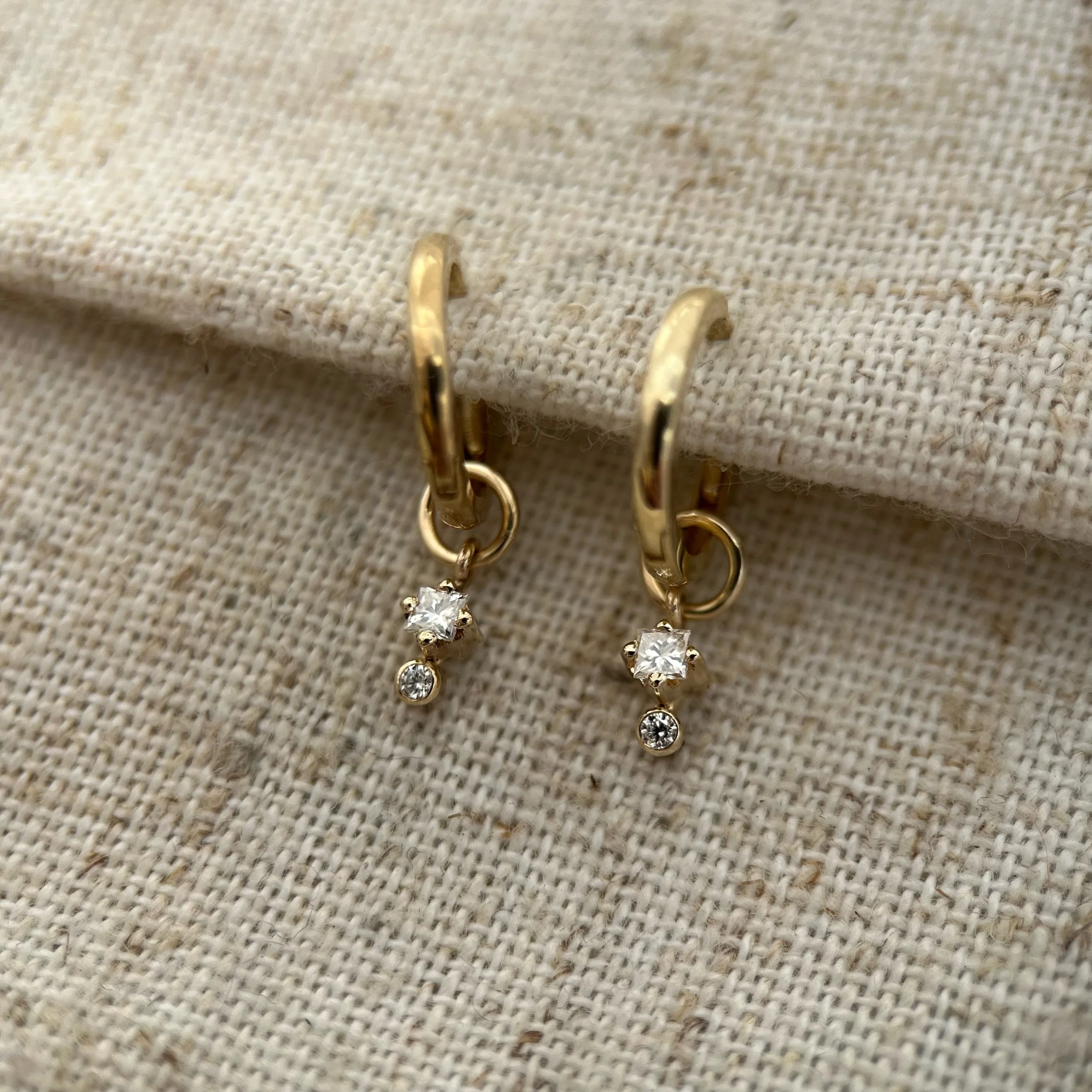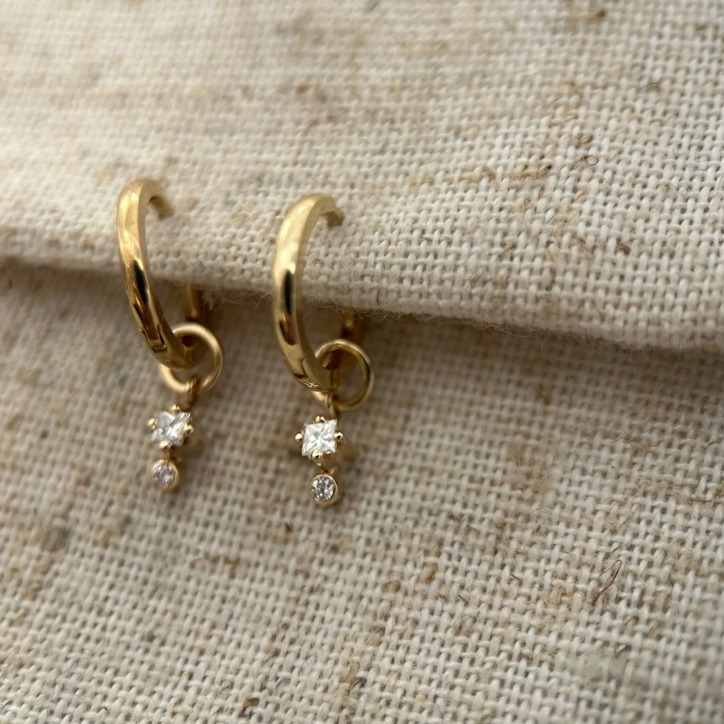 Genuine princess and brilliant cut diamond charms set in solid gold. Sold as single earring or pair