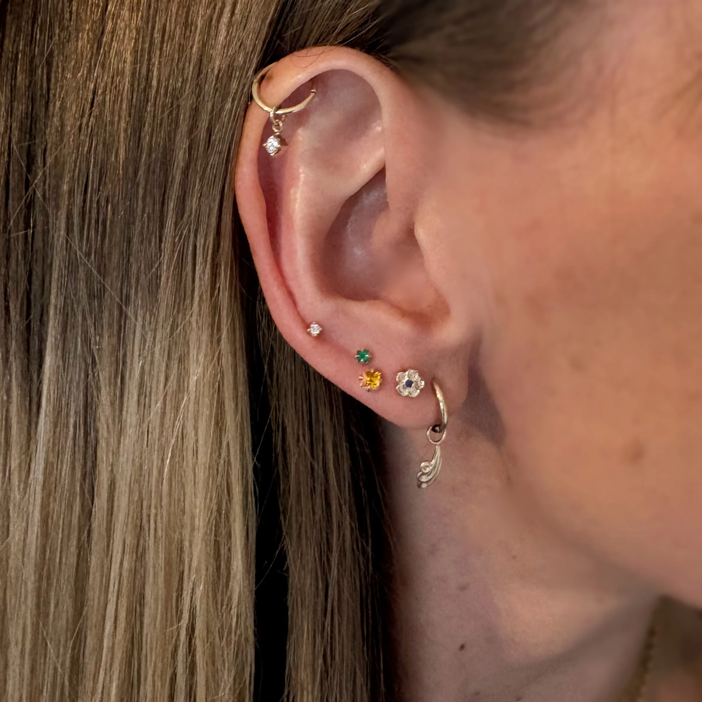 A little natural yellow sapphire pyramid stud, sold as a single. This is to allow you to build up whatever ear stack you are aiming for.